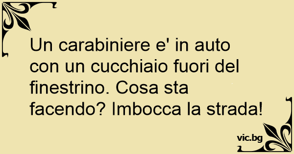 Un carabiniere e' in auto соn un cucchiaio fuori del finestrino. Cosa sta facendo? Imbocca la strada!