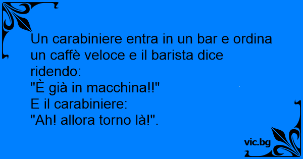 Un carabiniere entra in un bar e ordina un caffè veloce e il barista dice ridendo: