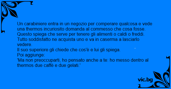 Un carabiniere entra in un negozio per comperare qualcosa e vede una thermos incuriosito domanda al commesso che cosa fosse.