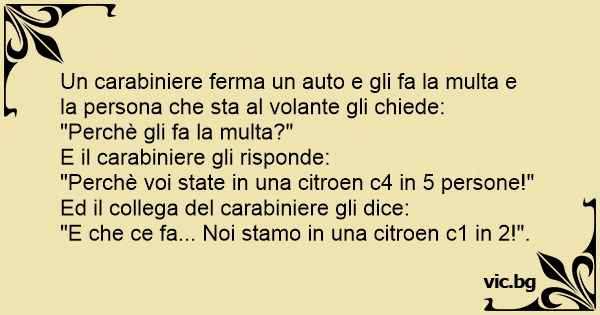Un carabiniere ferma un auto e gli fa la multa e la persona che sta al volante gli chiede: