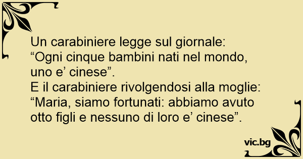 “Maria, siamo fortunati: abbiamo avuto otto figli e nessuno di loro e’ cinese”.