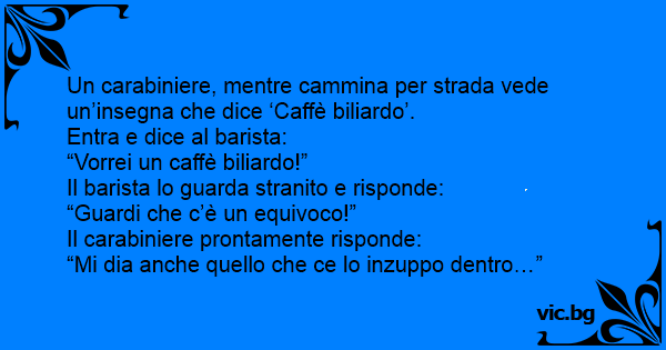 Un carabiniere, mentre cammina per strada vede un’insegna che dice ‘Caffè biliardo’.