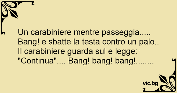 Un carabiniere mentre passeggia..... Ваng! e sbatte la testa contro un palo.. Il carabiniere guarda sul e legge: