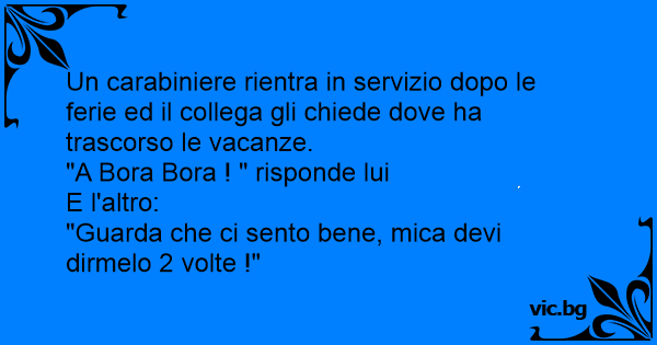 Un carabiniere rientra in servizio dopo le ferie ed il collega gli chiede dove ha trascorso le vacanze.