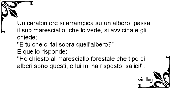Un carabiniere si arrampica su un albero, passa il suo maresciallo, che lo vede, si avvicina e gli chiede: