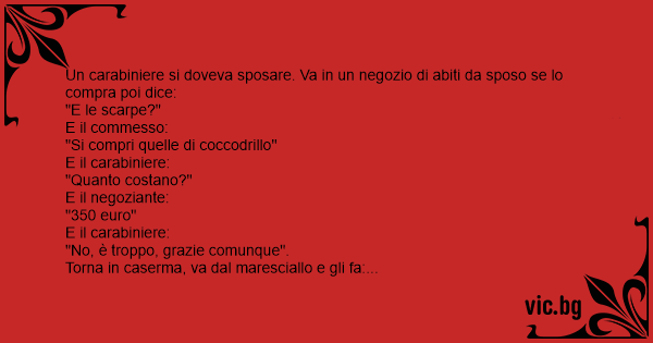 Un carabiniere si doveva sposare. Va in un negozio di abiti da sposo se lo compra poi dice: