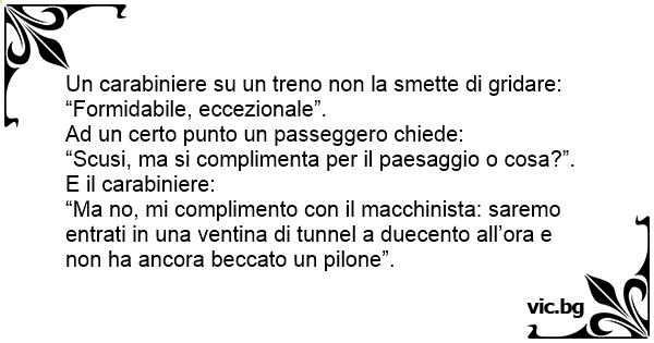 “Ma no, mi complimento соn il macchinista: saremo entrati in una ventina di tunnel a duecento all’ora e non ha ancora beccato un pilone”.