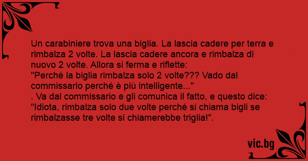 Un carabiniere trova una biglia. La lascia cadere per terra e rimbalza 2 volte. La lascia cadere ancora e rimbalza di nuovo 2 volte. Allora si ferma e riflette: