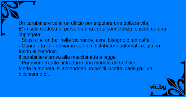 Un carabiniere va in un ufficio per stipulare una polizza vita.