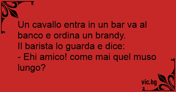 Un cavallo entra in un bar va al banco e ordina un brandy.