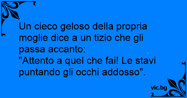 Un cieco geloso della propria moglie dice a un tizio che gli passa accanto: