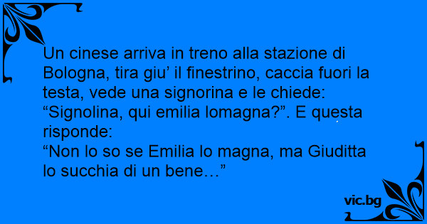Un cinese arriva in treno alla stazione di Bologna, tira giu’ il finestrino, caccia fuori la testa, vede una signorina e le chiede:
