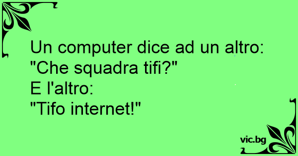 Un computer dice ad un altro:<br />"Che squadra tifi?"<br />E l'altro:<br />"Tifo internet!"
