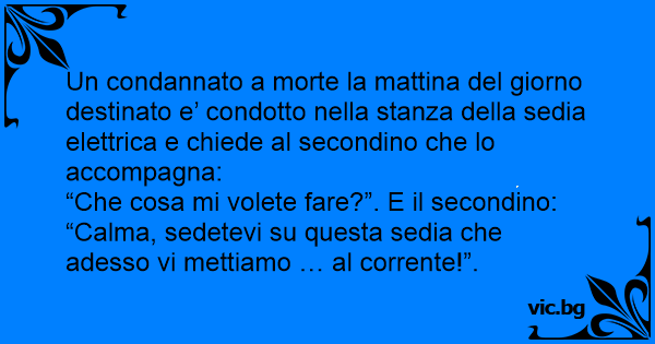 Un condannato a morte la mattina del giorno destinato e’ condotto nella stanza della sedia elettrica e chiede al secondino che lo accompagna: