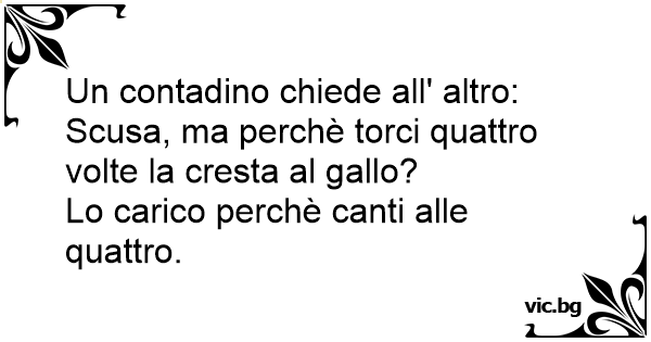 Un contadino chiede all' altro: Scusa, ma perchè torci quattro volte la cresta al gallo?