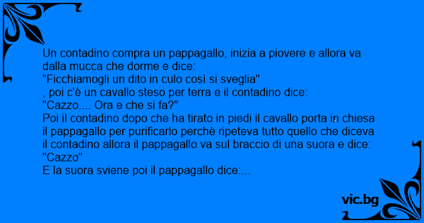 Un contadino compra un pappagallo, inizia a piovere e allora va dalla mucca che dorme e dice: