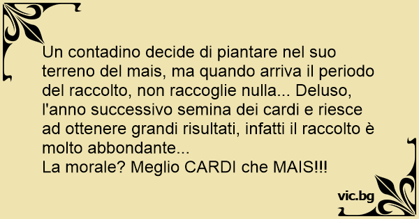 Un contadino decide di piantare nel suo terreno del mais, ma quando arriva il periodo del raccolto, non raccoglie nulla... Deluso, l'anno successivo semina dei cardi e riesce ad ottenere grandi risultati, infatti il raccolto è molto abbondante...