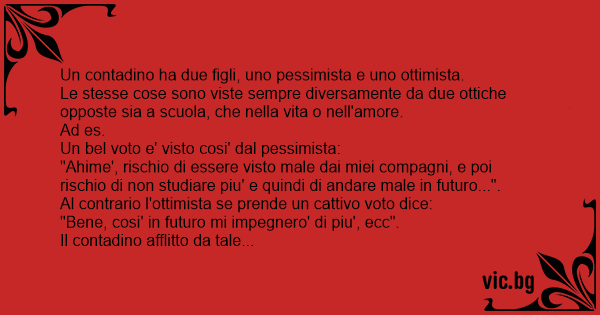 Un contadino ha due figli, uno pessimista e uno ottimista.