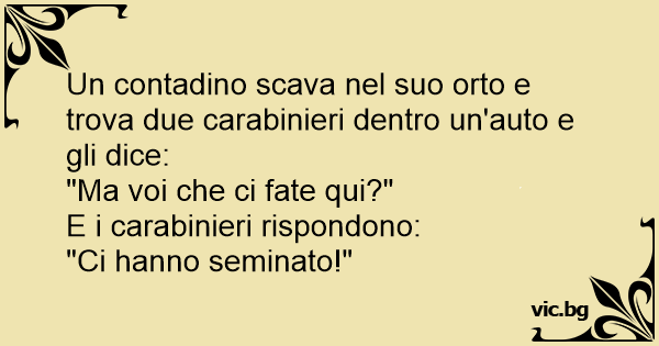 Un contadino scava nel suo orto e trova due carabinieri dentro un'auto e gli dice: