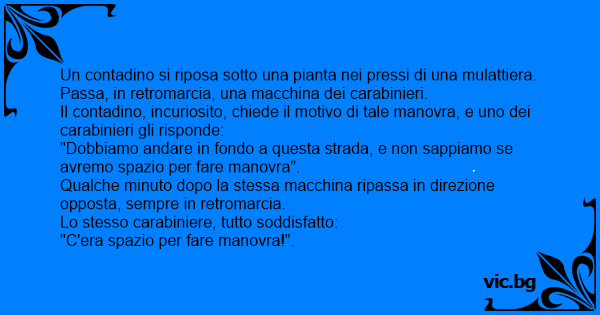 Il contadino, incuriosito, chiede il motivo di tale manovra, e uno dei carabinieri gli risponde: