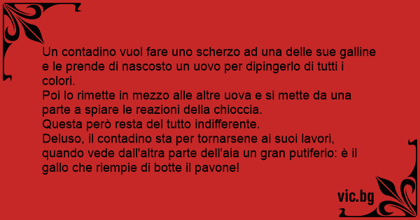 Un contadino vuol fare uno scherzo ad una delle sue galline e le prende di nascosto un uovo per dipingerlo di tutti i colori.