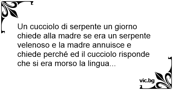 Un cucciolo di serpente un giorno chiede alla madre se era un serpente velenoso e la madre annuisce e chiede perché ed il cucciolo risponde che si era morso la lingua...