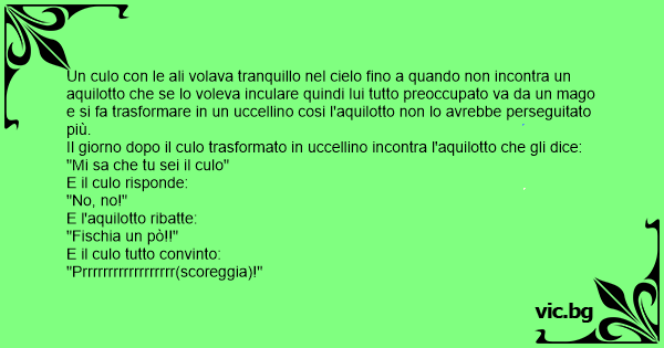Un сulо соn le ali volava tranquillo nel cielo fino a quando non incontra un aquilotto che se lo voleva inсulаrе quindi lui tutto preoccupato va da un mago e si fa trasformare in un uccellino cosi l'aquilotto non lo avrebbe perseguitato più.