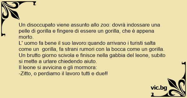 Un brutto giorno scivola e finisce nella gabbia del leone, subito si mette a urlare chiedendo aiuto.