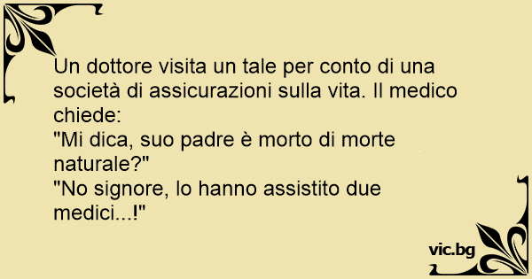 Un dottore visita un tale per conto di una società di assicurazioni sulla vita. Il medico chiede: