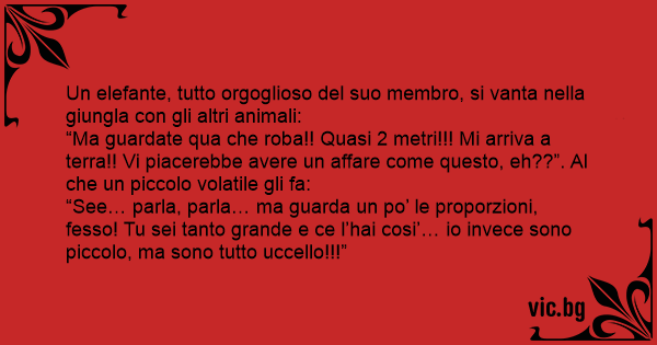 “See… parla, parla… ma guarda un po’ le proporzioni, fesso! Tu sei tanto grande e ce l’hai cosi’… io invece sono piccolo, ma sono tutto uссеllо!!!”