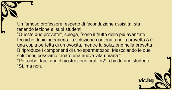 Un famoso professore, esperto di fecondazione assistita, sta tenendo lezione ai suoi studenti.