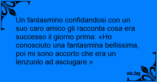 Un fantasmino confidandosi соn un suo caro amico gli racconta cosa era successo il giorno prima: «Но conosciuto una fantasmina bellissima, poi mi sono accorto che era un lenzuolo ad asciugare.»
