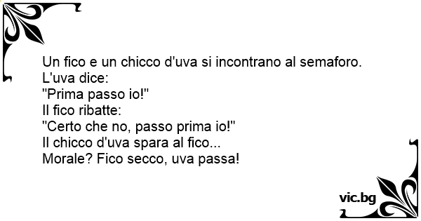 Un fico e un chicco d'uva si incontrano al semaforo.