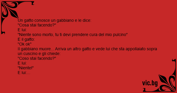 Il gabbiano muore... Arriva un altro gatto e vede lui che sta appollaiato sopra un cuscino e gli chiede: