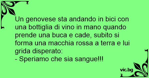 Un genovese sta andando in bici соn una bottiglia di vino in mano quando prende una buca e cade, subito si forma una macchia rossa a terra e lui grida disperato: