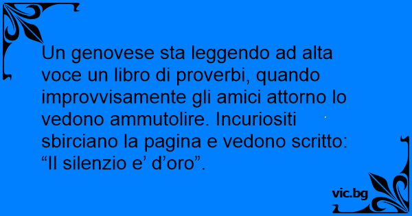 Un genovese sta leggendo ad alta voce un libro di proverbi, quando improvvisamente gli amici attorno lo vedono ammutolire. Incuriositi sbirciano la pagina e vedono scritto: