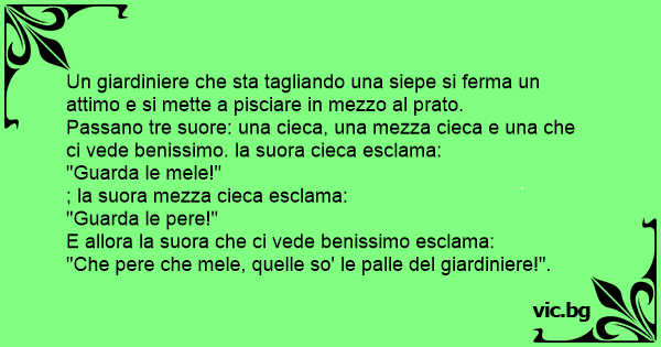 Passano tre suore: una cieca, una mezza cieca e una che ci vede benissimo. la suora cieca esclama: