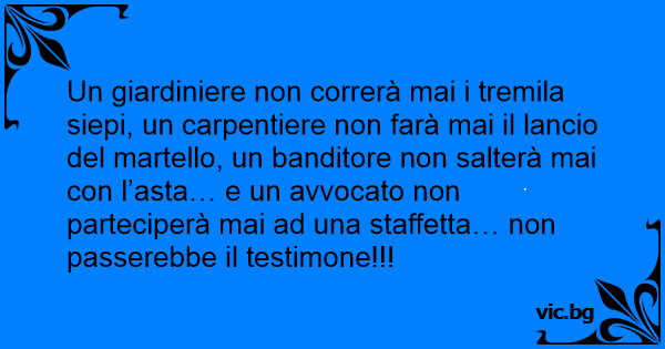 Un giardiniere non correrà mai i tremila siepi, un carpentiere non farà mai il lancio del martello, un banditore non salterà mai соn l’asta… e un avvocato non parteciperà mai ad una staffetta… non passerebbe il testimone!!!