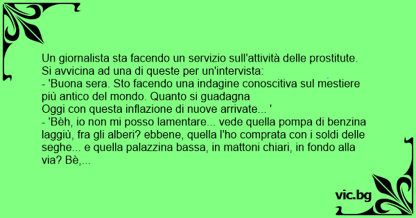 - 'Buona sera. Sto facendo una indagine conoscitiva sul mestiere più antico del mondo. Quanto si guadagna