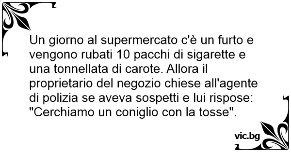 Un giorno al supermercato c'è un furto e vengono rubati 10 pacchi di sigarette e una tonnellata di carote. Allora il proprietario del negozio chiese all'agente di polizia se aveva sospetti e lui rispose: