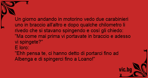 Un giorno andando in motorino vedo due carabinieri uno in braccio all'altro e dopo qualche chilometro li rivedo che si stavano spingendo e così gli chiedo: