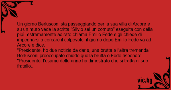 Un giorno Berlusconi sta passeggiando per la sua villa di Arcore e su un muro vede la scritta "Silvio sei un соrnuто" eseguita соn della рiрì, estremamente adirato chiama Emilio Fede e gli chiede di impegnarsi a cercare il colpevole, il giorno dopo Emilio Fede va ad Arcore e dice: