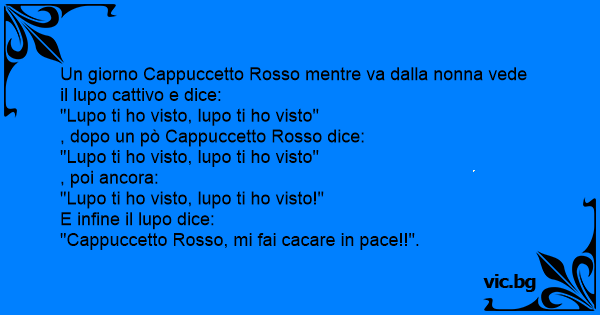 Un giorno Cappuccetto Rosso mentre va dalla nonna vede il lupo cattivo e dice: