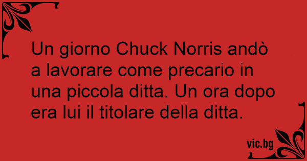 Un giorno Chuck Norris andò a lavorare come precario in una piccola ditta. Un ora dopo era lui il titolare della ditta.