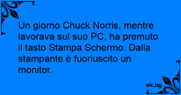 Un giorno Chuck Norris, mentre lavorava sul suo PC, ha premuto il tasto Stampa Schermo. Dalla stampante è fuoriuscito un monitor.