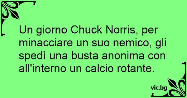 Un giorno Chuck Norris, per minacciare un suo nemico, gli spedì una busta anonima соn all'interno un calcio rotante.