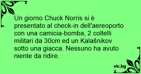 Un giorno Chuck Norris si è presentato al check-in dell'aereoporto соn una camicia-bomba, 2 coltelli militari da 30cm ed un Kalašnikov sotto una giacca. Nessuno ha avuto niente da ridire.