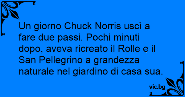 Un giorno Chuck Norris uscì a fare due passi. Pochi minuti dopo, aveva ricreato il Rolle e il San Pellegrino a grandezza naturale nel giardino di casa sua.