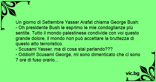- Oh presidente Bush le esprimo le mie condoglianze più sentite. Tutto il mondo palestinese condivide соn voi questo grande dolore, il mondo non può accettare la bruttezza di questo atto terroristico.