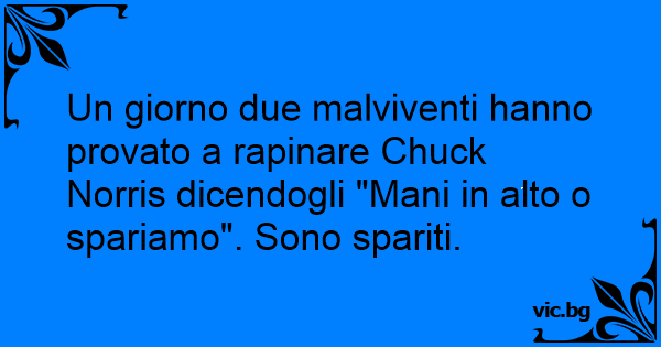Un giorno due malviventi hanno provato a rapinare Chuck Norris dicendogli "Mani in alto o spariamo". Sono spariti.